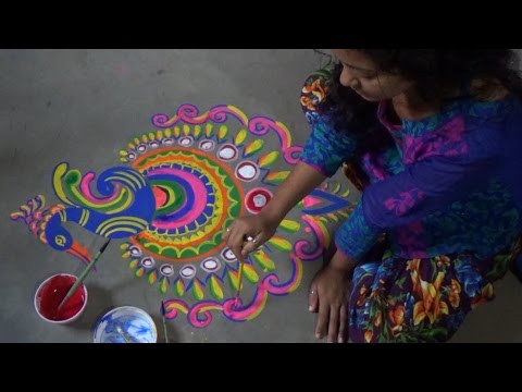 rangoli paint peacock alpana easy designs draw very